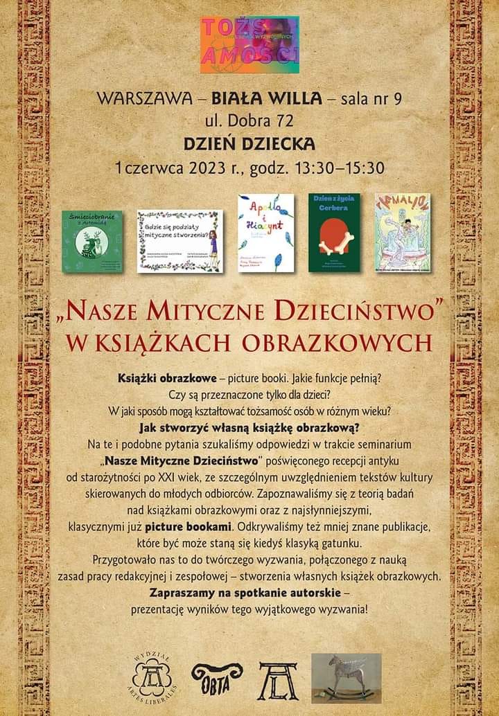 Czego nauczył się Apollo jako przedszkolak? Jak wygląda dzień z życia Cerbera? Gdzie się podziały mityczne stworzenia? Kim chciał zostać mały Pigmalion i czy spełnił swe marzenie? Czym zajmuje się dziś Artemida? Odpowiedzi na te pytania można znaleźć w książkach obrazkowych przygotowanych przez uczestniczki i uczestników seminarium „Nasze Mityczne Dzieciństwo”, prowadzonego przez prof. Katarzynę Marciniak na Wydziale „Artes Liberales” UW w ramach programu „Our Mythical Childhood”.
